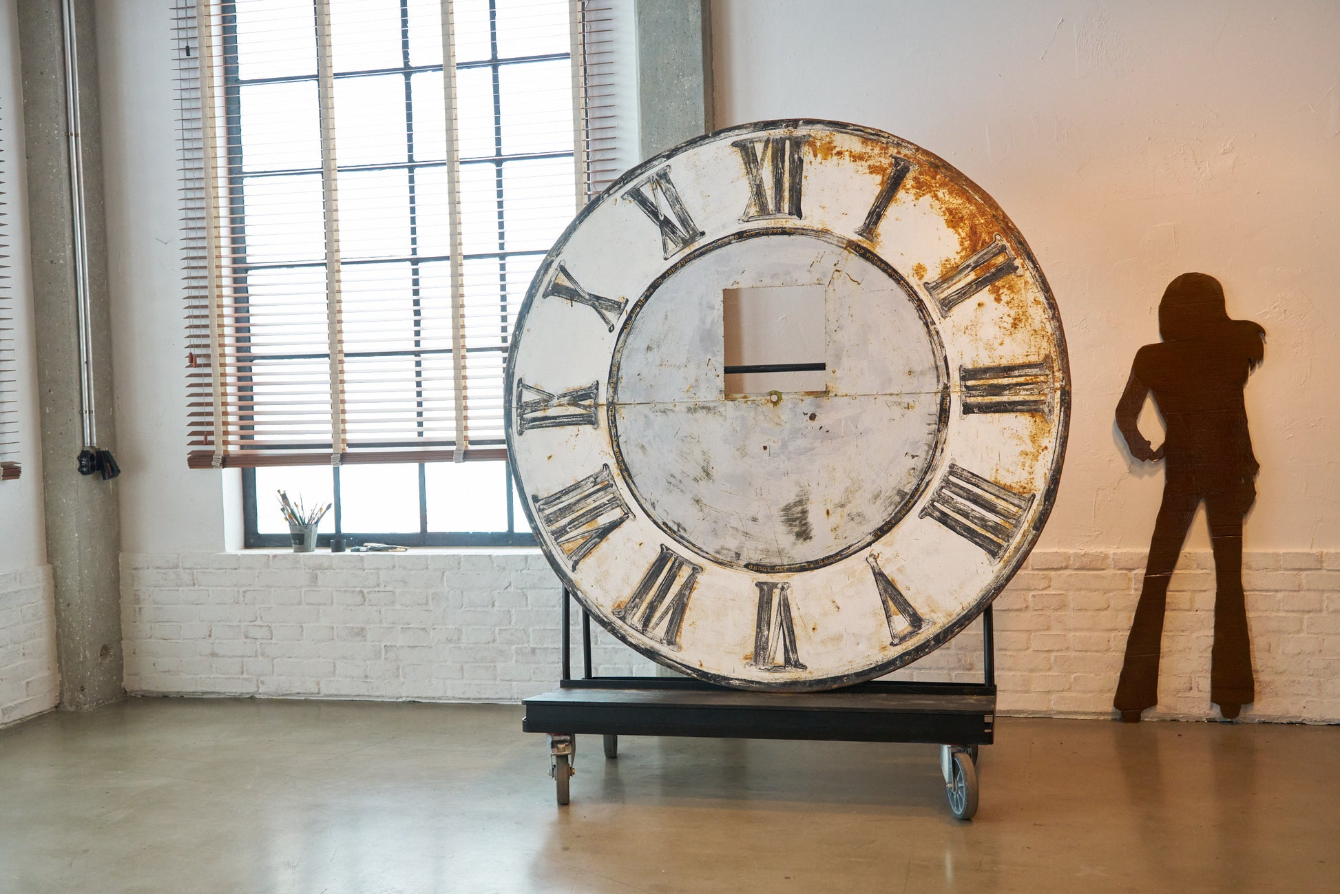 old church tower clock face, acrylic paint on metal